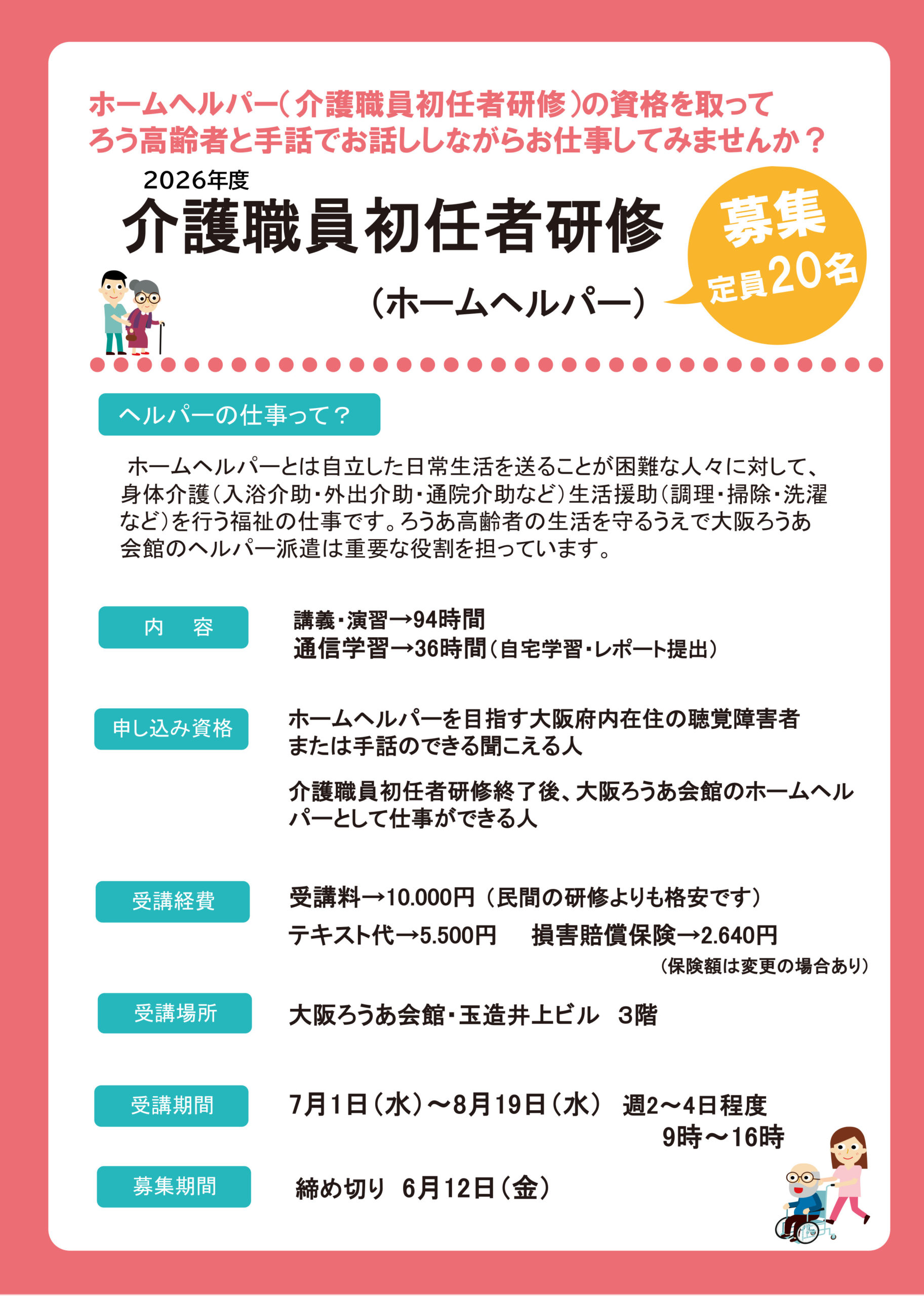 そこでこのたび、公益社団法人 大阪聴力障害者協会ではホームヘルパー養成講座を開催することとなりました。